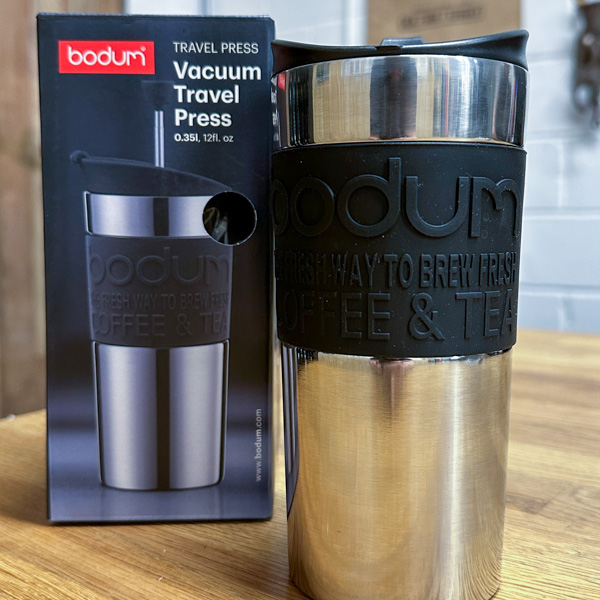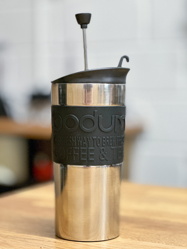Brew and drink or use in place of a 3-cup French Press. 3-4 tablespoons coarse ground coffee, your preferred milk and sweetener goes into the mug, and in the four minutes brewing time, it develops its full aroma. Simply press down on the plunger and off out the door you go! The double wall mug helps keep the coffee hot
