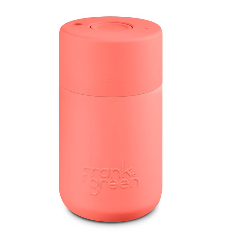 From Melbourne, Australia, comes the Frank Green coffee cup! This company brings us it’s eco-friendly original reusable cup which blends design, form and function with sustainability. This is the optimum reusable cup experience. Its push-button lid is easy to use and prevents spills or if you prefer, can take it off and drink from the rim of the cup.