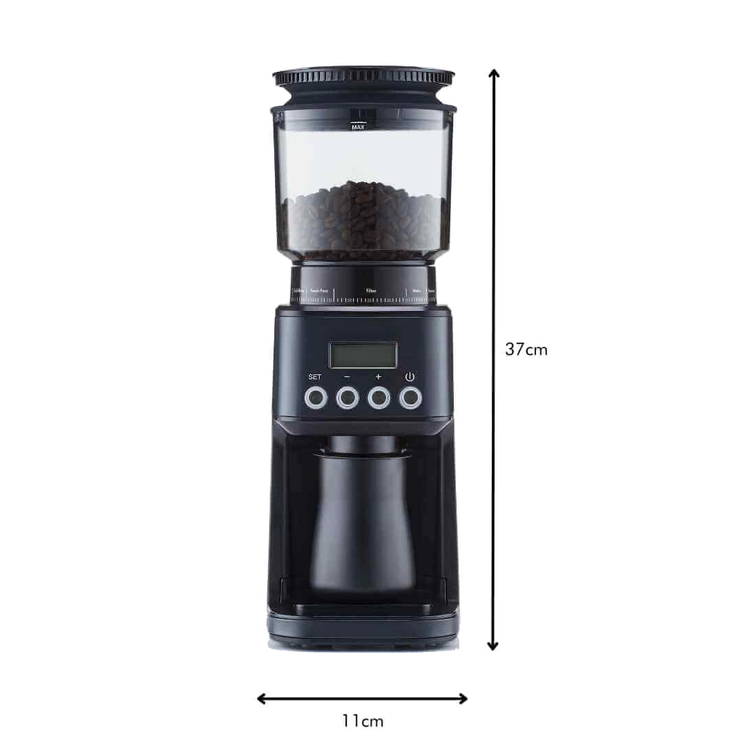 Something that sets the Core All Grind Plus aside from the rest is the matte black dosing cup that’s included with every coffee grinder. This is the easiest way to ensure you get the perfect dose, as it’s easy to remove and weigh. The narrow mouth of the dosing cup fits neatly into any size portafilter. This means if your espresso machine is not compatible with the 53mm or 58mm portafilter cradle attachments, you’ve got a simple solution.