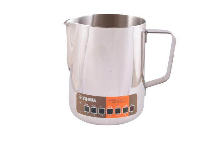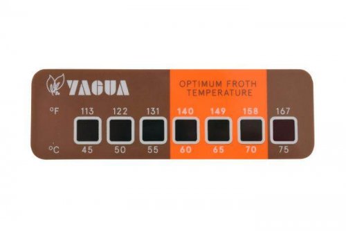 Waterproof dual dial label thermometer which fixes directly onto your frothing jug.
