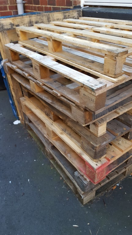 Pallets. We get a lot of pallet deliveries and only send some of them back out, so we encourage upcycling them into garden projects.