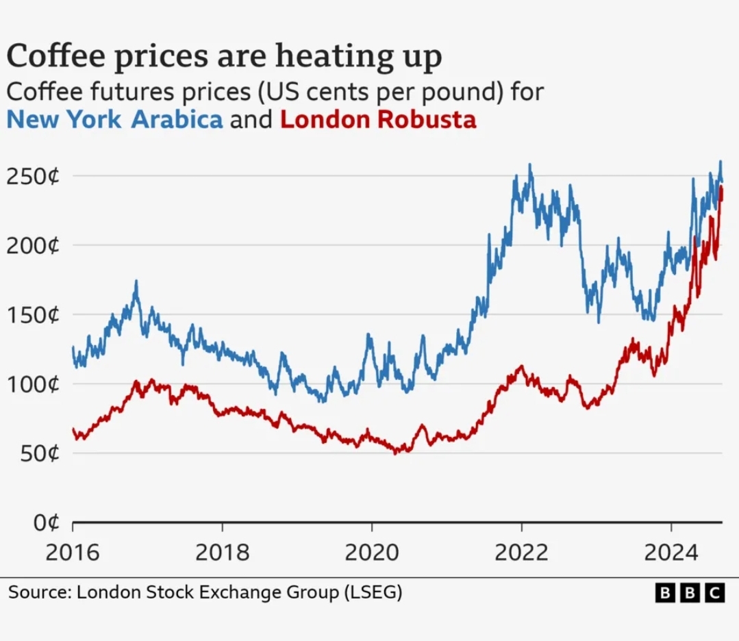 >The INDEPENDENT (Sept 2024): Why the price of your cup of coffee is set to rise